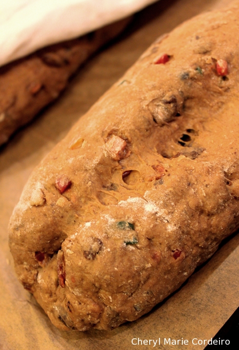 In this ginger-orange stollen, I decided to fold in the dried candied fruits into the dough instead of folding in the fruits after the dough has risen, as some recipes call for. And in this baking round, the breads seemed to turn out fine as they were.