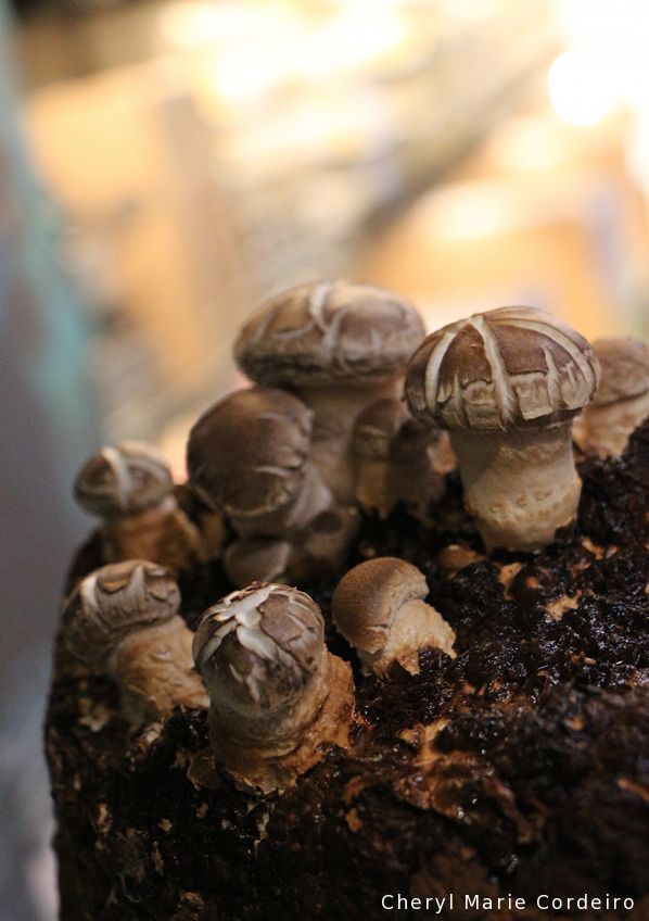 As I walked into this mushroom in box exhibition booth, the lady behind the counter was going around misting water on the mushrooms. Noting that I was following her around the booth as a curious child, she looked at me and said, “They don’t like the air here you know. It’s too dry.” I smiled and nodded. Yes, I could see how their button heads would perk up and smile with a bit of moisture on them.