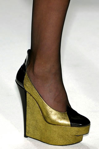 For one thing, I thought lower heeled shoes were the way to go, after previous seasons of skyscraper platforms such as YSL’s Tribute, Louboutin’s Declic and most of Gianmarco Lorenzi’s super platform boots / shoes with 14 cm heels. I was wrong.