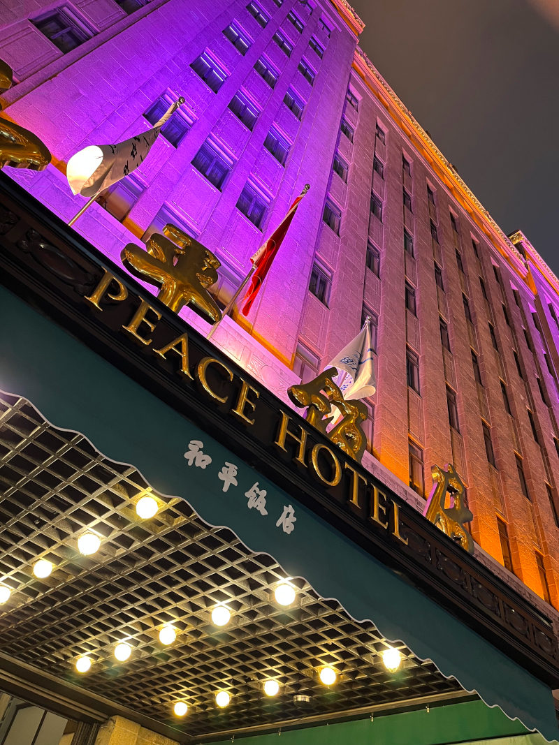 The Peace Hotel dominates this stretch, an Art Deco masterpiece built in 1929 that’s witnessed nearly a century of Shanghai’s tumultuous history. Its distinctive pyramidal copper roof glows at night, and standing before it after our 1920s photo shoot felt like closing a circle. This hotel was ground zero for that romantic Shanghai era we’d just play-acted. Noël Coward supposedly wrote Private Lives here while recovering from influenza. Diplomats, writers, spies, gangsters, revolutionaries, they all passed through these doors during Shanghai’s most legendary decades.