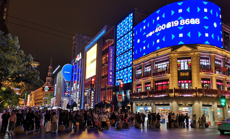 We emerged somewhere mid-street on the pedestrian section, that 1.2-kilometer stretch where over a million daily visitors flow past shops, food vendors, and the occasional Dangdang tram clanging its nostalgic way through the crowds. The street is a glorious collision of eras, century-old department stores in European classical glory standing beside neon-blazing modern boutiques, luxury brands sharing space with century-old food emporiums.